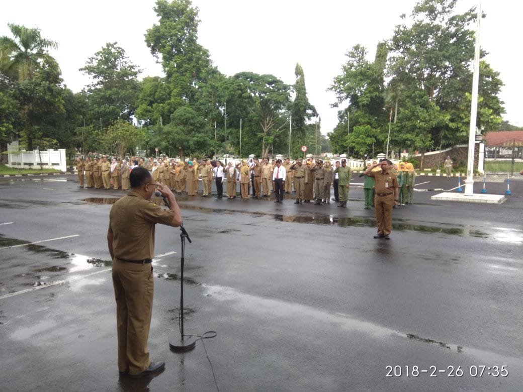 SUBANG, (PERAKNEW).- Seluruh pejabat dan Aparatur Sipil Negara (ASN) lingkup Pemerintah Daerah (Pemda) Subang melaksanakan apel pagi yang dipimpin langsung oleh Asisten Perekonomian dan Pembangunan Subang, Drs. Komir Bastama, M.Si., di Halaman Kantor Pemda Subang, Senin (26/2/18).
