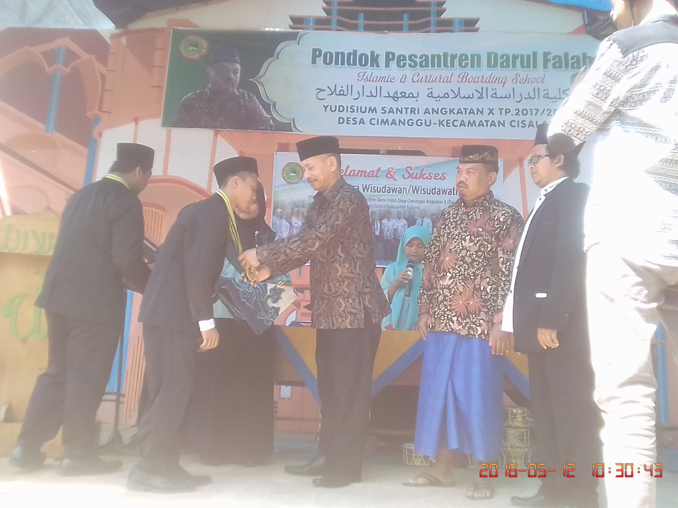 Dalam kesempatan tersebut, Plt Bupati Subang, Ating Rusnatim mewisuda santri yang telah menamatkan program belajar di Ponpes Darul Falah.