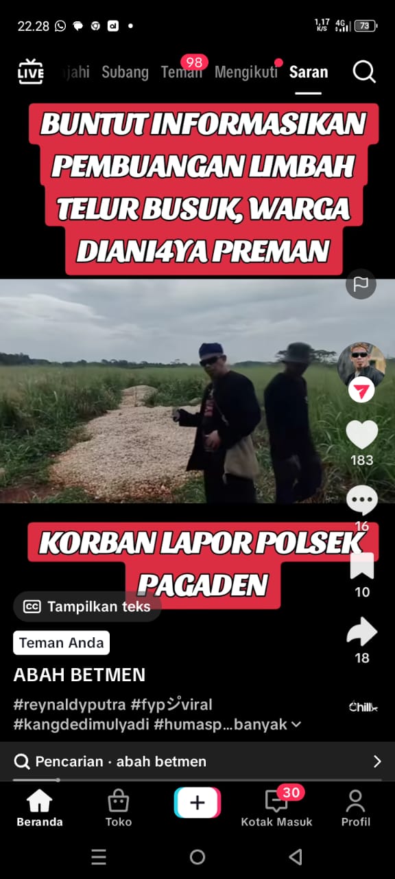 Pasalnya, kejadian tersebut, buntut dari viralnya video pembuangan limbah telur busuk di area persawahan yang digarap oleh korban, di Akun Tiktok Abah Betmen.