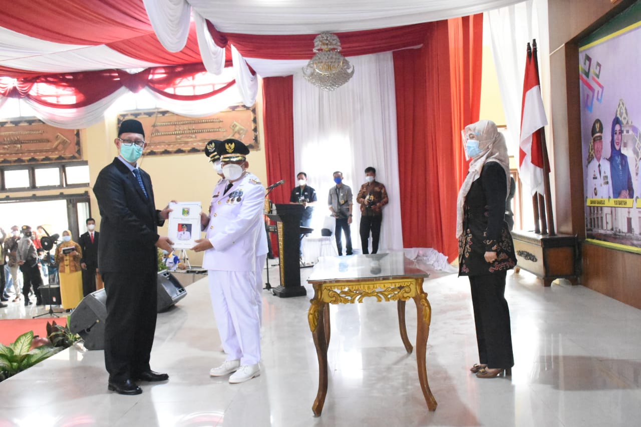 LAMTIM-LAMPUNG, (PERAKNEW).- H. Dawam Rahardjo M.Si dan H. Azwar Hadi, M.Si resmi menerima estafet kepemimpinan Kabupaten Lampung Timur (Lamtim) selanjutnya pada Periode 2021 – 2024, Jum’at (26/02/2021).