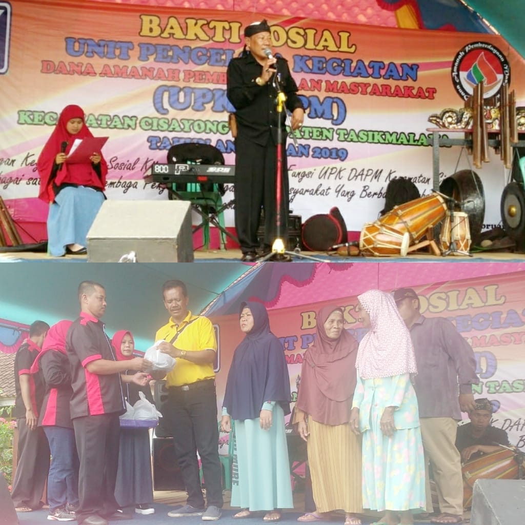 Bantuan bersumber dari bersumber Csar/cash flow UPK DAPM yang di berikan kepada 390 anakan yatim dan dhuafa dari 13 sewilayah Kecamatan Cisayong dengan sebayak 30 orang/desa di berikan secara simbolis oleh Kepala UPK DAPM Asep Saepudin A.Md kepada masing-masing Kepala desa.