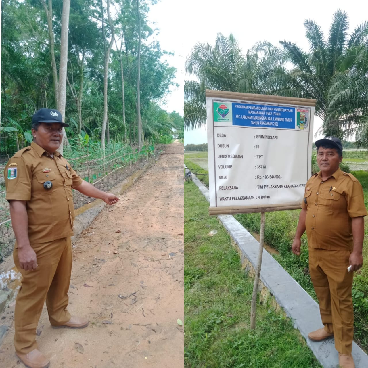 LAMTIM-LAMPUNG, (PERAKNEW).- Pemerintah Desa (Pemdes) Sriminosari, Kecamatan Labuhan Maringgai, Kabupaten Lampung Timur (Lamtim), Provinsi Lampung Memaksimalkan Pembangunan Infrastruktur dengan Dana Desa (DD) Tahun 2021.