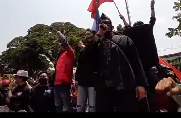 SUBANG, (PERAKNEW).- Masa Organisasi Kemasyarakatan Pemuda (OKP) Organisasi Masyarakat (Ormas), Lembaga Swadaya Masyarakat (LSM) dan Mahasiswa yang tergabung dalam Konsorsium Komunitas Anak Muda Peduli Anti Korupsi (KAMPAK), yaitu Forum Masyarakat Peduli (FMP), Forum Anak Jalanan (FORAJAL), Mahasiswi Fakultas Hukum Universitas Subang dan Karang Taruna Desa Sukamandijaya, Kecamatan Ciasem, Kabupaten Subang turut serta berunjuk rasa turun ke jalan bergabung bersama Puluhan ribu masa Aliasi Buruh se Kab. Subang padati Alun-Alun Pemda Subang kepung Kantor Bupati dan DPRD Subang, Kamis (8/10/2020).
