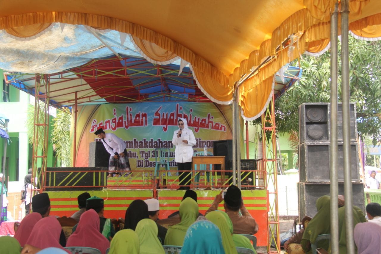 SUBANG, (PERAKNEW).- Ratusan jama’ah pengajian syahri’ah begitu antusias saat sambut kedatangan Bupati Subang, Hj. Imas Aryumningsih, di Kampung Mariuk, Desa Mariuk, Kecamatan Tambakdahan dan Kec. Binong, Kabupaten Subang, Rabu (31/1/2018).