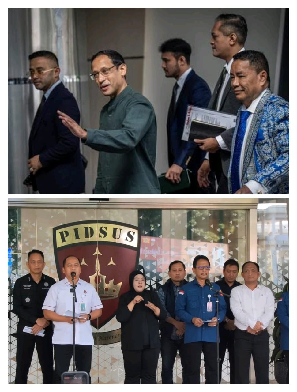 Inisial “NAM” merujuk pada Nadiem Makarim. Dia sudah menjalani tiga kali pemeriksaan sebagai saksi, pada 23 Juni 2025 (±12 jam), 15 Juli 2025 (±9 jam) dan hari ini sebelum ditetapkan sebagai tersangka.