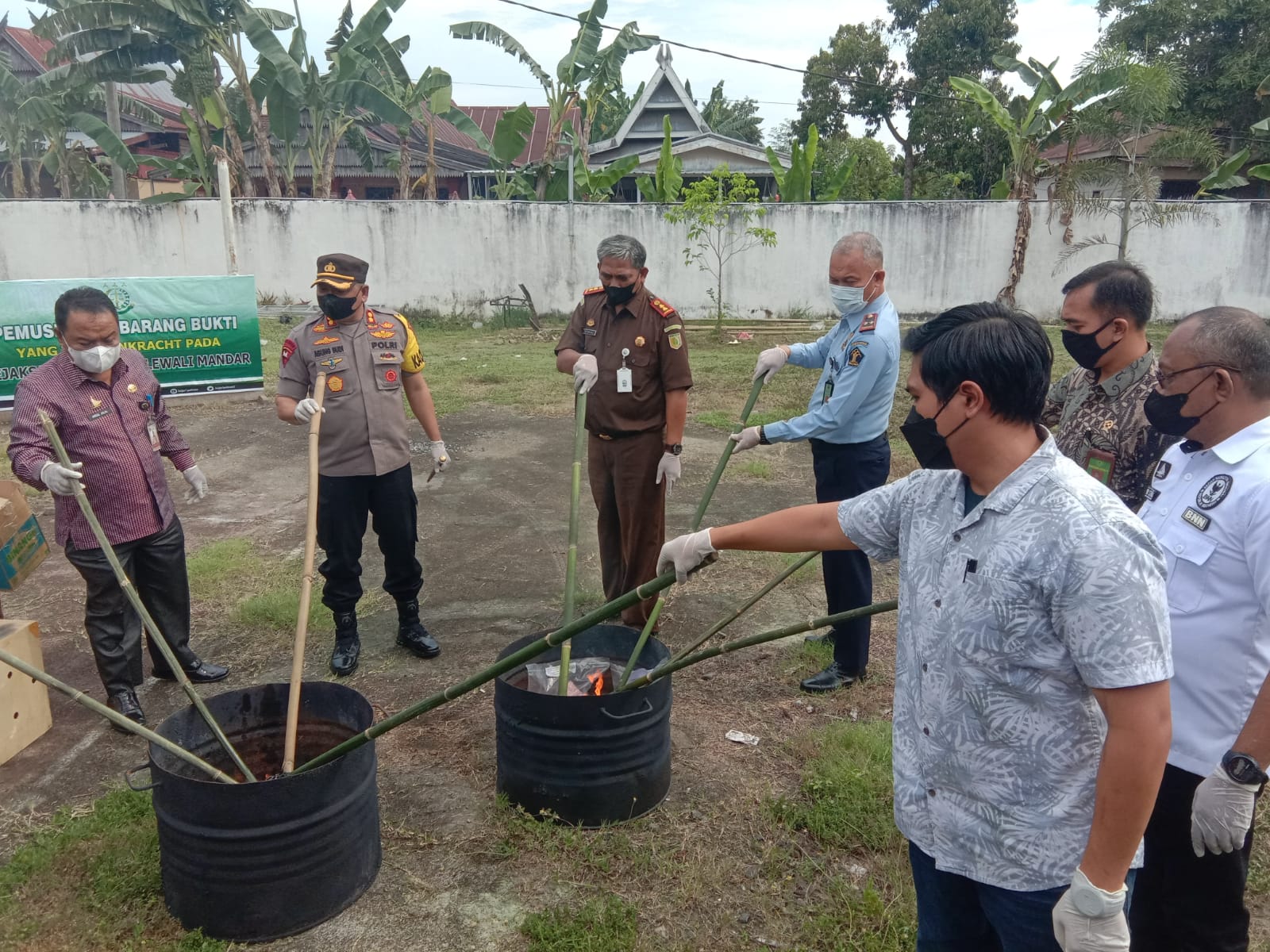 Pemusnahan barang bukti ini dilaksanakan di Halaman Belakang Kejari Polewali dipimpin oleh Kepala Kejari Polewali, Muhammad Ikhwan yang dihadiri oleh Kapolres Polman, AKBP Agung Budi Leksono, Kalapas Polewali Abd Waris, Ketua PN Polewali, Rony Suawata, Kepala BNNK Polman, Syabri Syam, Kabag Hukum Pemkab Polman, Abd Jalal Tahir dan Kasatreskrim Polres Polman, Iptu Agung Setiyo Negoro.
