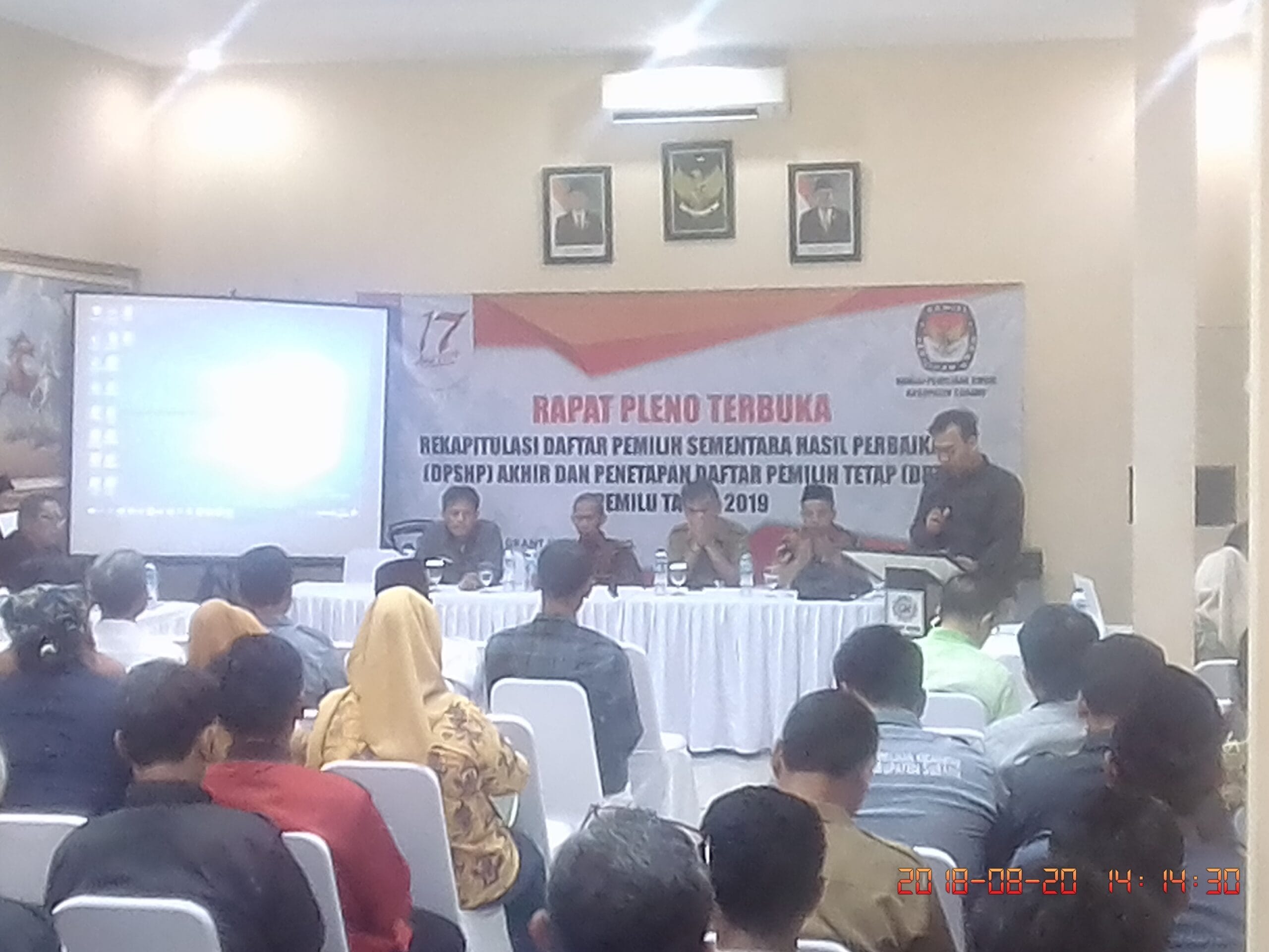 Penetapan DPT Pemilu 2019 itu, dilakukan memalui rapat pleno terbuka rekapitulasi Daftar PemilihSementara Hasil Perbaikan(DPSHP) dan Penetapan DPT Pemilu Tahun 2019.