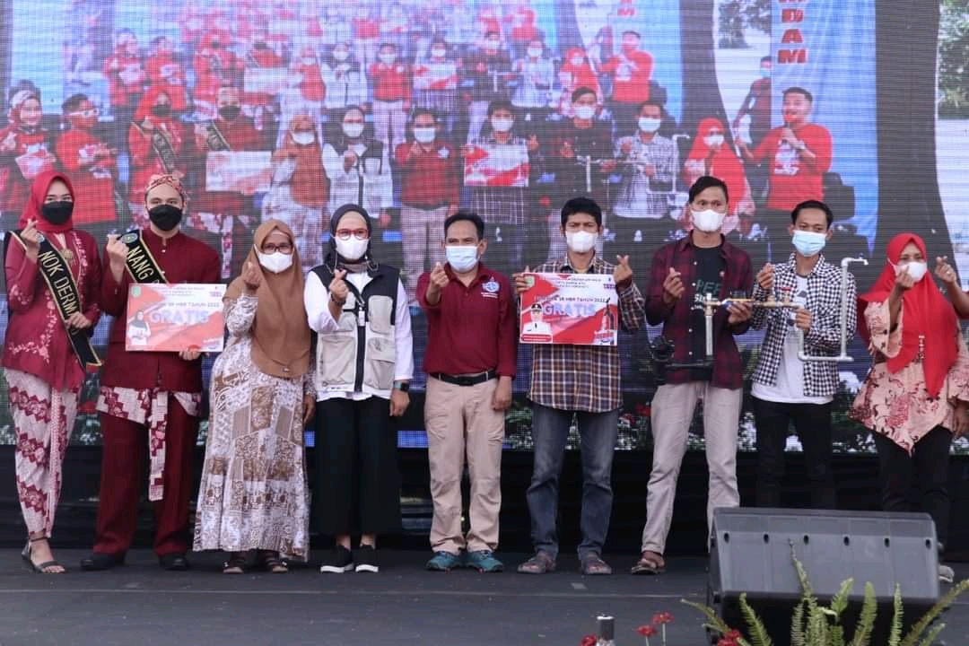 INDRAMAYU, (PERAKNEW).- Bupati Indramayu, Nina Agustina Da’i Bachtiar menghadiri Milad ke-2 Perusahaan Umum Daerah Air Minum (Perumdam) Tirta Darma Ayu sekaligus melaunching Program Dermayu Banyu Sehat (DEBAS). Acara tersebut bertempat di Kantor Perumdam Tirta Darma Ayu Indramayu, Kamis (23/12/21).