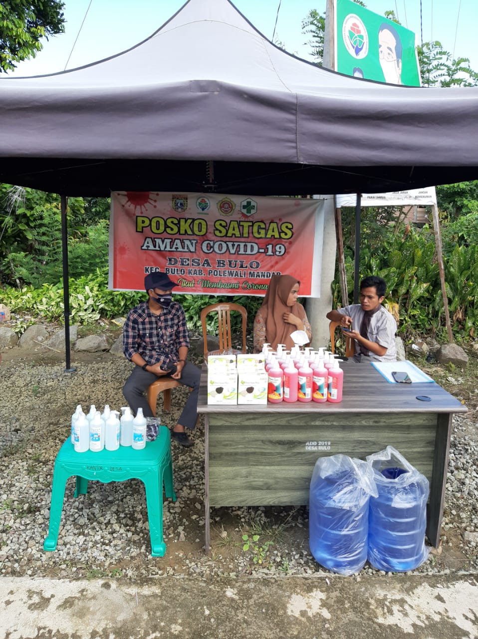 POLMAN-SULBAR, (PERAKNEW).- Dalam rangka upaya memutus mata rantai penyebaran Corona virus disease (Covid-19) di Desa Bulo, Kecamatan Bulo, Kabupaten Polewali Mandar (Polman), Provinsi Sulawesi Barat (Sulbar), Pemerintah Desa (Pemdes) Bulo membagikan ratusan masker, sanitizer, sabun cuci tangan dan galon, kepada masyarakatnya.