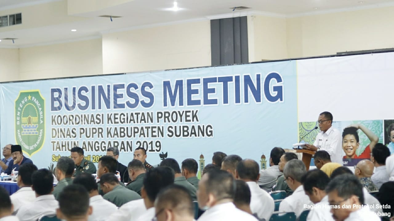 Laporan Penyelenggara Kegiatan Kepala Dinas PUPR Dr. Ir. Besta Besuki Kertawibawa., M.PPM menyampaikan maksud diadakannya rapat ini diharapkan peran serta yang baik dari pada penyedia jasa, pengguna jasa, produsen beton, produsen hot mix, para pelaksana teknis dan pengawas lapangan dapat memahami secara utuh kegiatan yang akan dilaksanakan dan dukungan kondusif lapangan dari muspida dan muspika se-Kab. Subang sehingga kegiatan fisik konsultasi yang ada di PUPR dapat berjalan dengan baik sesuai rencana. Dengan tujuan diharapkan melalui rapat koordinasi ini dinas instansi terkait dan peran serta positif masyarakat luas dapat mengetahui rencana kegiatan fisik konsentruksi yang dikelola Oleh dinas PUPR Kabupaten Subang sebagai wujud dari transparansi penyelenggaraan kegiatan pada tahun anggaran 2019.