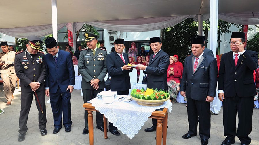 CIMAHI, (PERAKNEW).- Apel pertama masuk kerja pasca libur Hari Raya Idul Fitri di lingkungan Pemkot Cimahi digelar berbarengan dengan Peringatan HUT ke-17 Kota Cimahi yang jatuh pada, Kamis 21 Juni 2018.