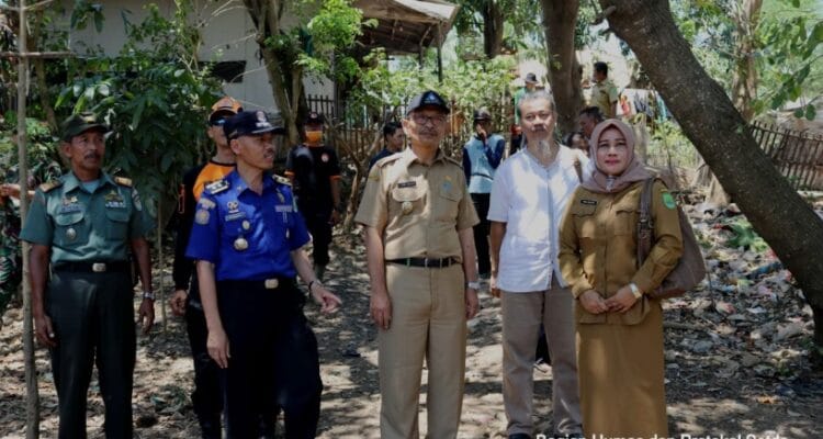 SUBANG, (PERAKNEW).- Sungai Cigadung longsor, Plt Bupati Subang, H. Ating Rusnatim meninjau langsung