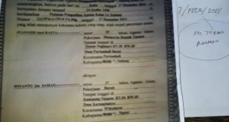 PURWADADI-SUBANG, (PERAKNEW).- Terkait dugaan Oknum Pegawai KUA Purwadadi, Kabupaten Subang telah memalsukan akta