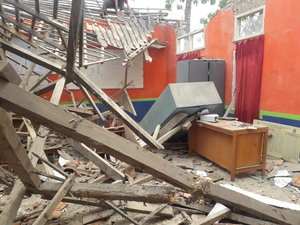 Menurut keterangan salah seorang guru yang berada di tempat kejadian, bahwa bangunan ini sudah rapuh lantaran sudah terlalu tua, sehingga kayu-kayu sebagai penyangga tidak kuat menahan beban genteng.