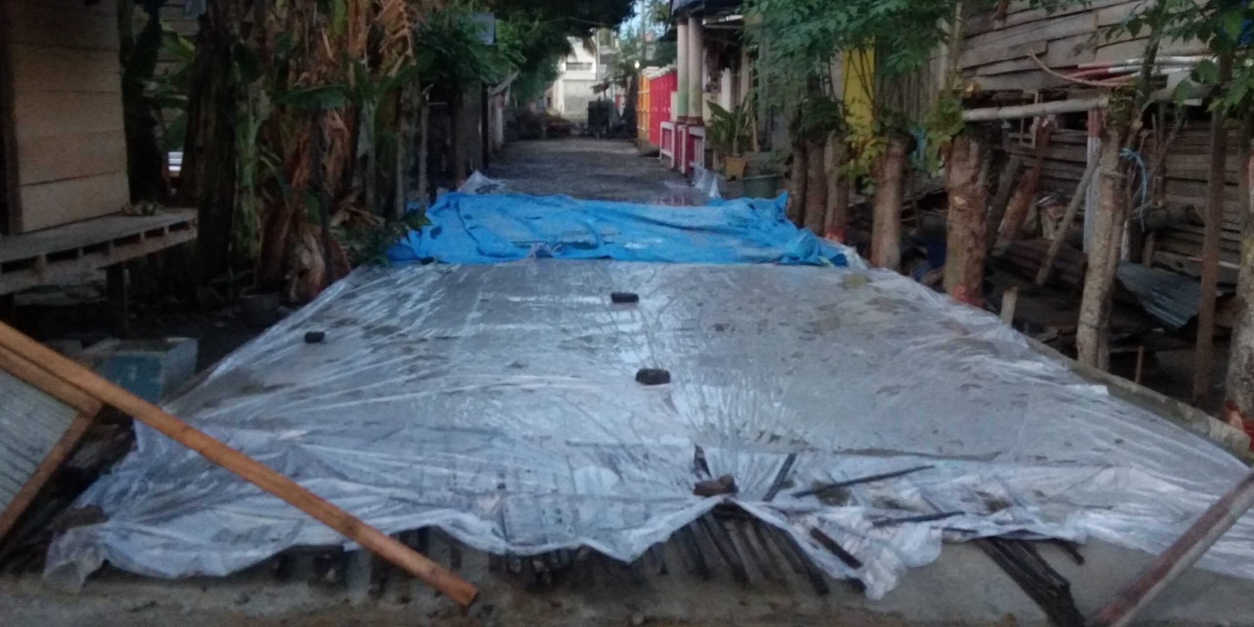 POLMAN-SULBAR, (PERAKNEW).- Pembangunan jalan Rabat Beton yang ada di Desa Banua Baru, Kecamatan Wonomulyo, Kabupaten Polewali Mandar (Polman), Provinsi Sulawesi Barat (Sulbar), tepatnya tidak jauh dari kantor desa tersebut, tidak memiliki papan informasi, Kamis (26/12/2019).
